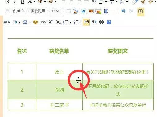目前,135編輯器里的表格支持拖動(dòng)表格行列,控制行列寬度或高度。