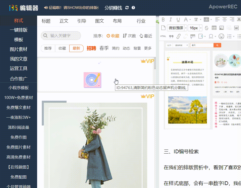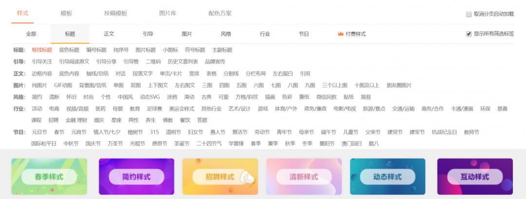 在我們135編輯器文字排版工具中,有海量的樣式素材