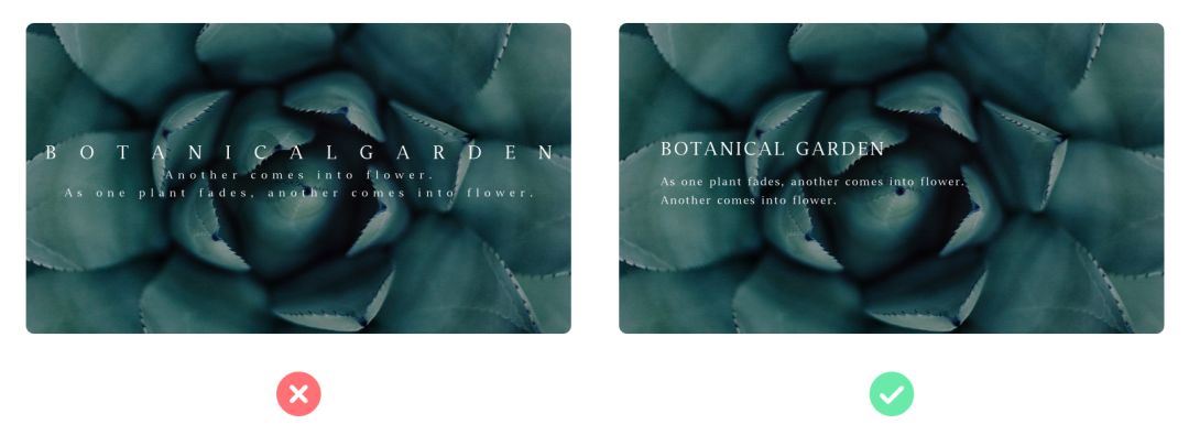 循白紙黑字、黑紙白字的原則,在深色的背景上采用亮色的字體一般能保證可讀性。字體過細(xì)、背景與文字對比度不夠、文字透明度過高等問題,都會造成文字與背景融為一體。存在諸如此類的問題都要針對性的去調(diào)整。