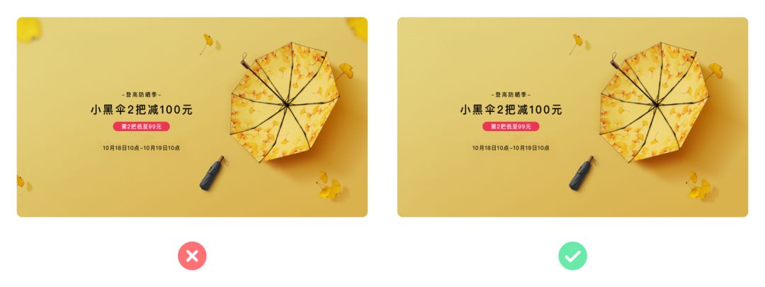 在平面上營造空間感,不外乎在于近大遠(yuǎn)小與景深模糊。營造空間感也是為了突顯主體,制造視覺重點(diǎn),吸引用戶的注意力。如左圖中,兩個相同形狀大小的產(chǎn)品直接疊加在一起,是沒有空間感可言的,左字右圖的平衡被完全打破了。在右圖中,我們把置于后面的產(chǎn)品進(jìn)行調(diào)小跟模糊,讓視覺的重點(diǎn)落在前面,而后面的產(chǎn)品就會被潛移默化的當(dāng)成背景的一部分,從而形成畫面左字右圖的內(nèi)容平衡。