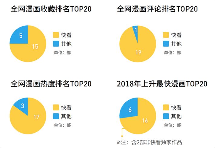 根據骨朵 IP 數據,全網漫畫收藏排名 TOP20 中,有 15 部作品來自快看漫畫;全網漫畫評論排名 TOP20 中,快看漫畫占了 19 部;全網漫畫熱度排名 TOP20 中,有 17 部屬于快看漫畫……
