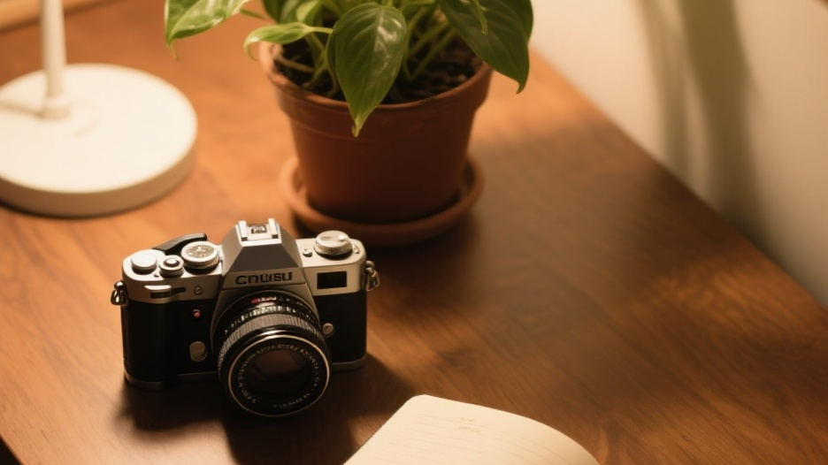 jimeng-2025-10-10-8134-幫我生成一個前景:大學生拿著相機或手機拍攝的剪影 背景:校園風景(操場、圖書館、_.jpg